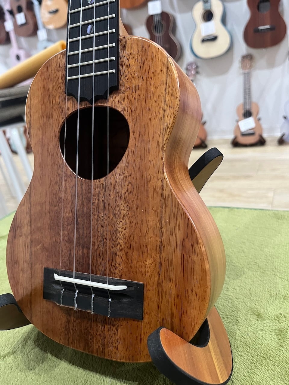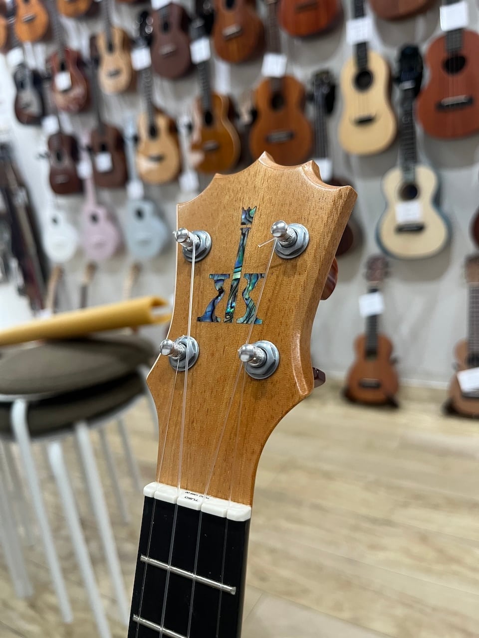 その最大の特徴は圧倒的な鳴りやすさにあります。カマカは時間が経ってから鳴り始めると言われていますが、コアロハは対照的に出来た時から鳴っているウクレレと言えるでしょう。その理由としてその軽さにあると思いいます。ボディ材は厚みを薄くしてより振動しやすくし、ライニングと言われる横板と表板と裏板の糊代に当たる部材を独自の工夫により無くし軽量化を施しています。