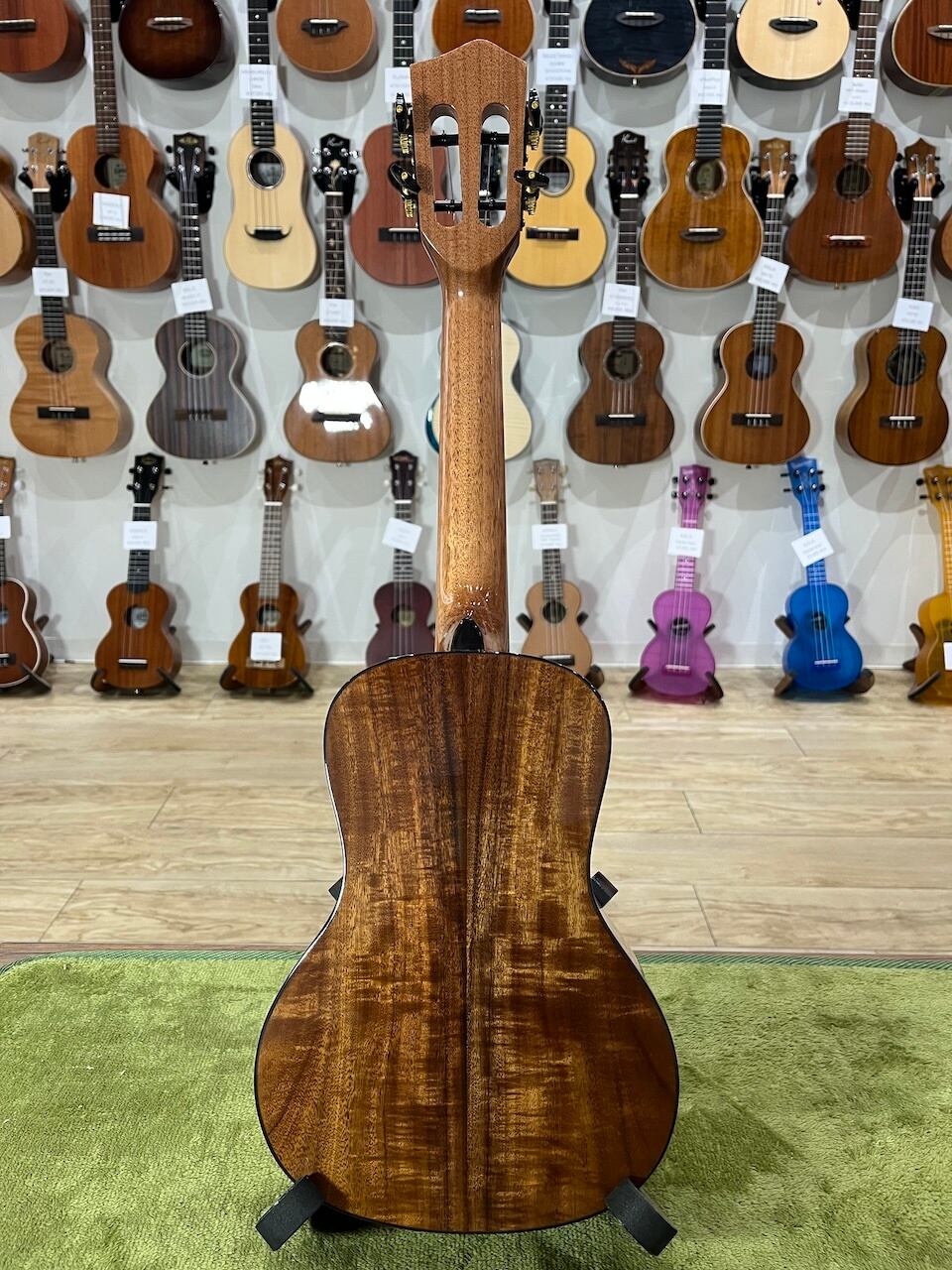 ボディ材はアカシアコアでこの値段帯ではレアなオール単板です。Kaiの共通仕様でありトレードマークでもあるサイドホールにより、弾き手にダイレクトに音が届きモニター効果抜群です。アカシアコアらしいコロコロとしたスズナリ感たっぷりの音色と豊かな音量を併せ持っています。