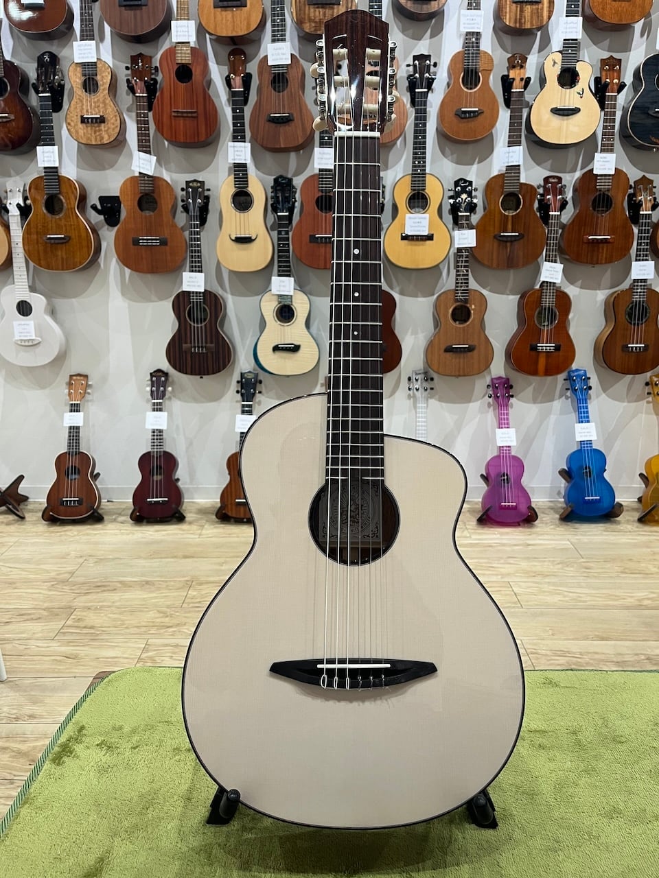a Nue Nue Nino Winter White ピックアップ付きミニガットギター