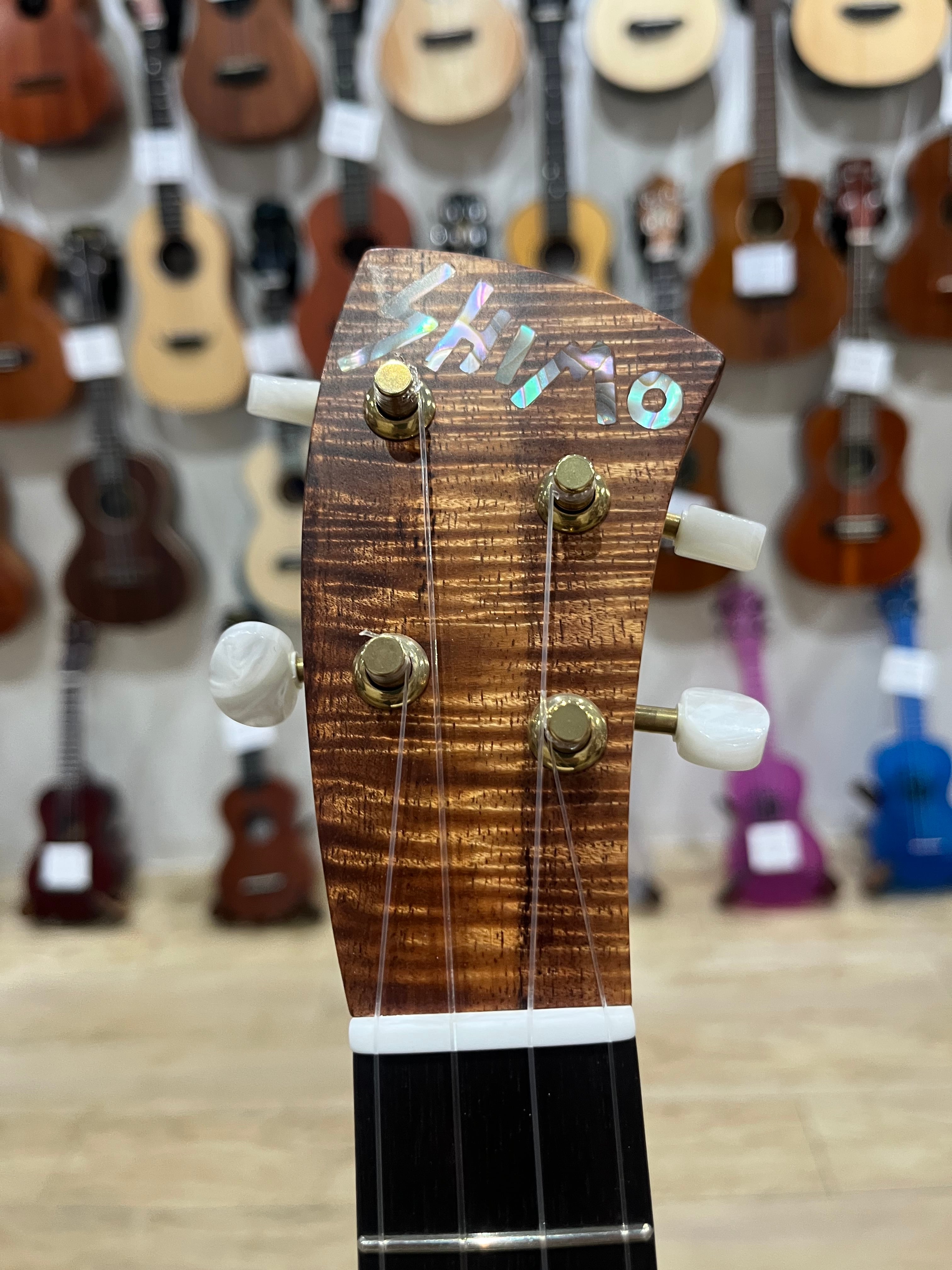 志茂 崇弘さんは日本の個人ルシアーの開拓者とも言える存在です。製作の名門アメリカのロバートベン製作学校でしっかりと基礎を学びつつも、感性に基づいたオリジナリティの高いギター、ウクレレ、マンドリンなど弦楽器全般を製作して高い評価を得ています。高木ブーさんのアイコンとも言えるトリプルネックウクレレをはじめ、野村義郎さん、勝誠二さんなど、愛用しているアーティストは多数です。